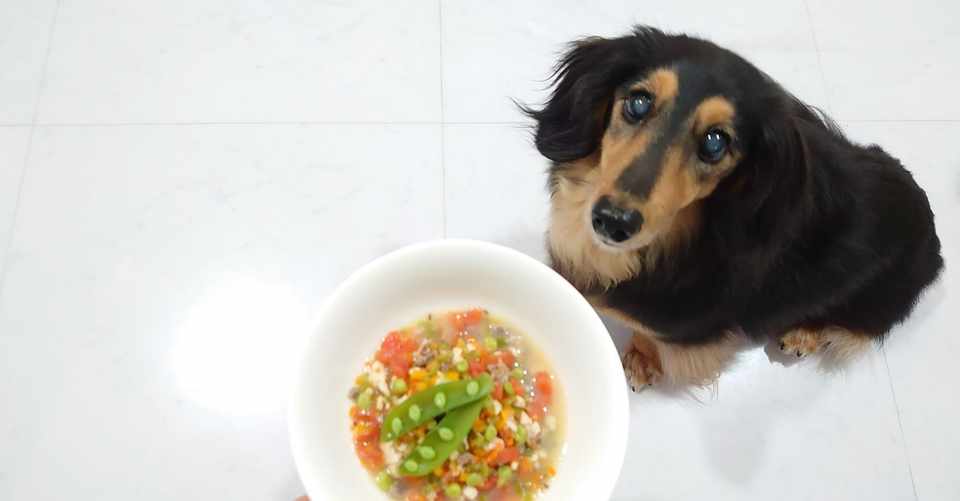 硬い食材は炒め煮しましょう 手作り犬ごはん かぼちゃとスナップエンドウのお魚スープ 幸せのテーブル